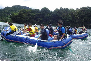 <上流編~ダム湖でラフティングボートを体験してみよう~>