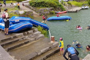 <上流編~ダム湖でラフティングボートを体験してみよう~>
