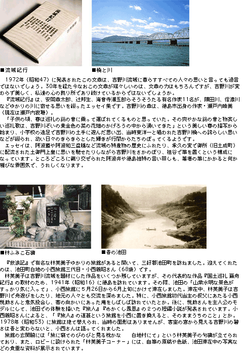 作家の目に吉野川はどんなふうに映っているのでしょう 作家の感性は吉野川をどう表現しているのでしょう 瀬戸内寂聴、司馬遼太郎、モラエス・・・文学に描かれた吉野川を紹介します