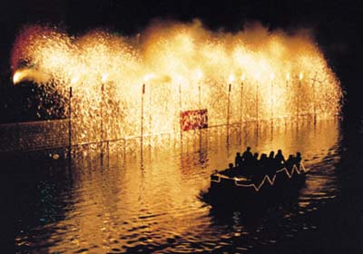 年が明け、伝統ある相生町吹く筒煙火が盛大に新世紀を祝福する。滝のような火の粉が川面を照らす。あちこちで上がる年賀の声・・・。